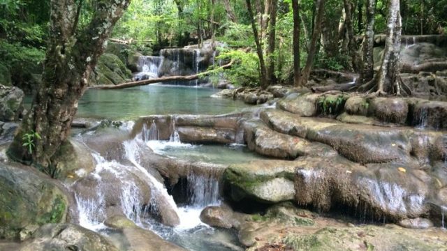 - Keunikan: Aliran air terjun melewati tebing berbentuk seperti tangga sebelum jatuh ke kolam alami berwarna hijau toska, menciptakan pemandangan yang unik.
