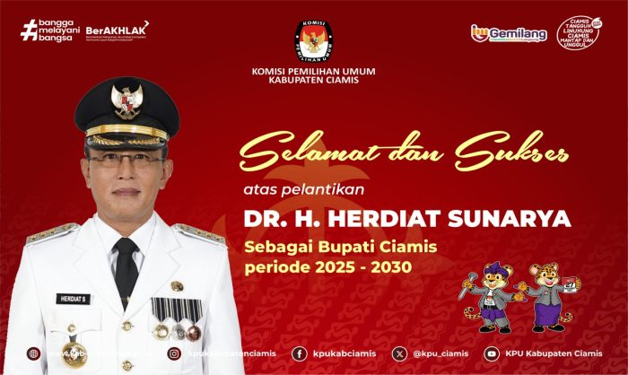 Beranda News DR.Herdiyat Sunarya Dilantik Prabowo Sebagai Bupati Ciamis Bersamaan dengan 960 Kepala Daerah DR.Herdiyat Sunarya Dilantik Prabowo Sebagai Bupati Ciamis Bersamaan dengan 960 Kepala DaerahYanto Supriatna20 Februari 202520 Februari 2025KomentarBagikanXBagikanBupati Ciamis Herdiat Sunarya Dilantik Prabowo, Serentak Bersama 960 Kepala DaerahBaca JugaWali Kota Tasikmalaya Bahas Program Nasional dengan Kemensos, Fokus Putus Rantai Kemiskinan Yanto Supriatna15 April 202615 April 2026Resmi Dibuka! Galeri Investasi Syariah Hadir di LP3I Tasikmalaya, OJK Tekankan Investasi Aman Yanto Supriatna15 April 2026Wali Kota Tasikmalaya Tegas: Parkir Tanpa Karcis Tak Wajib Dibayar Yanto Supriatna14 April 2026Di Tengah Keterbatasan Anggaran, Wali Kota Tasikmalaya Fokus pada Kebutuhan Mendesak Warga Yanto Supriatna13 April 202614 April 2026Aksi Kolaborasi 250 Komunitas, Masjid Agung Tasikmalaya Dibersihkan dengan Teknik Khusus Yanto Supriatna12 April 2026Resmi Dimulai! Jembatan Perintis Garuda di Sungai Ciseel Bakal Ubah Akses Tasikmalaya–Ciamis Yanto Supriatna10 April 202610 April 2026OJK Tasikmalaya Gandeng Penyuluh Agama Ciamis, Perkuat Literasi Keuangan Masyarakat Yanto Supriatna8 April 2026Ijang Hilman Mubarok Siap Maju Ketua KNPI Tasikmalaya, Usung Roadmap Pemuda 2026–2028 Yanto Supriatna7 April 2026Pedagang Cuanki hingga Kupat Tahu Hemat Jutaan Rupiah Berkat Mudik Gratis Pupuk Kujang Yanto Supriatna18 Maret 202619 Maret 2026Ratusan Sineas Tasikmalaya Dalami Peran Artistik, Ferdiansyah Dorong Kualitas Perfilman Daerah Yanto Supriatna7 Maret 20267 April 2026TNI dan Bikers Advocate Tasikmalaya Berbagi 1.000 Takjil, Perkuat Silaturahmi di Bulan Ramadhan Yanto Supriatna28 Februari 20262 Maret 2026OJK dan TPAKD Sumedang Perkuat Akses Keuangan Inklusif Berkelanjutan di 2026 Yanto Supriatna4 Februari 20265 Februari 2026