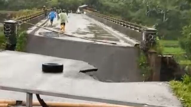Akibat hujan deras yang terjadi pada Minggu (6/5) Sore jembatan Ciduglaeun kecamatan Cigalontang terputus.
