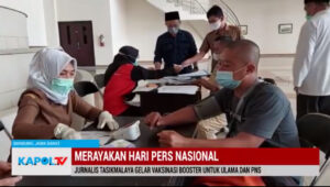 Bakti jurnalis Tasikmalaya mewarnai perayaan Hari Pers Nasional 2022. Kali ini menggelar vaksin booster untuk ulama dan karyawan di lingkungan Pemkab Tasikmalaya.