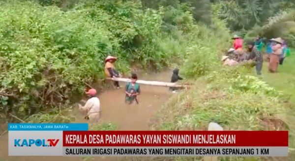 Kepala Desa Padawaras Yayan Siswandi menjelaskan saluran irigasi Padawaras yang mengitari desanya sepanjang 1 km.