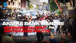 Paguyuban Pemuda Lembur Ciamis turun ke jalan. Mereka menggelar orasi di depan Kantor Cabang Mandiri Ciamis.
